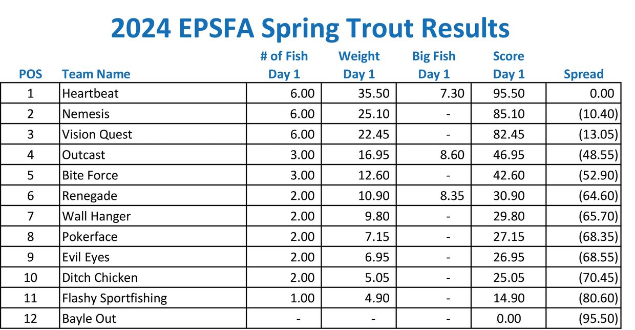 Many thanks to EPSFA for holding these events which are not only fun, but in addition create a tremendous camaraderie within our fishing community.